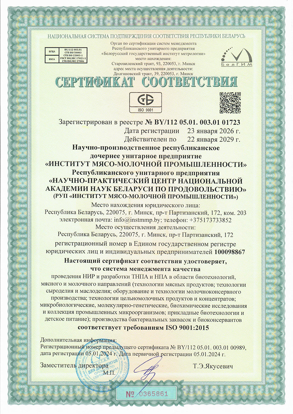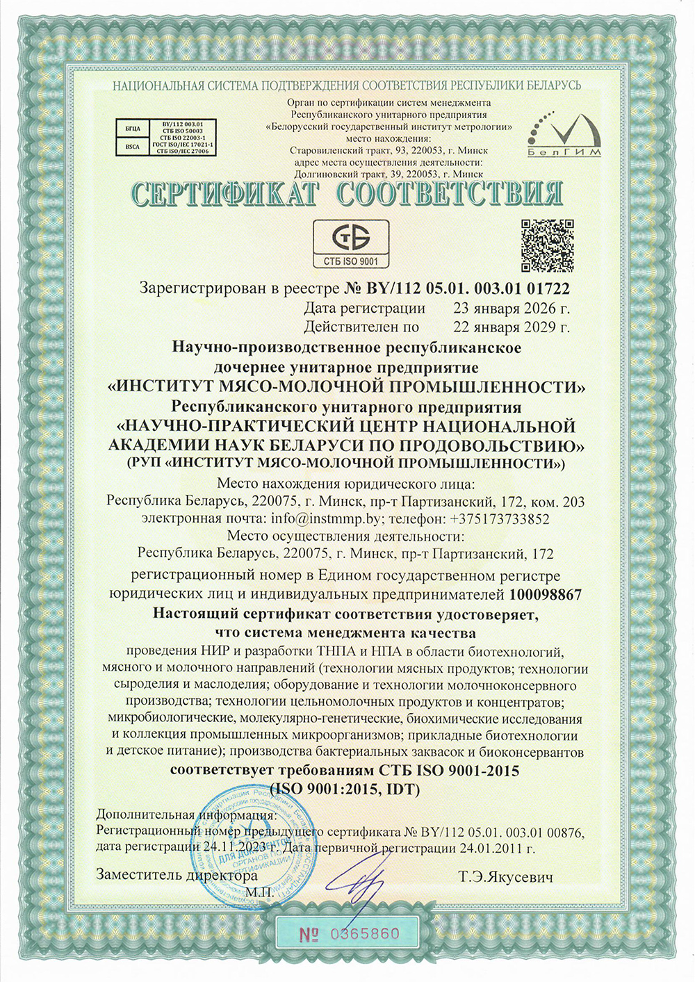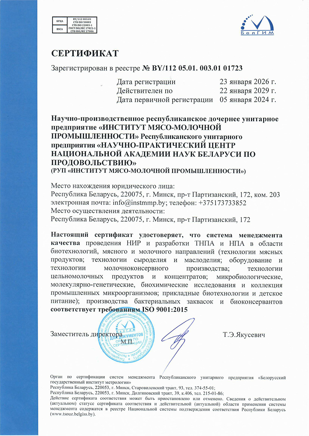 Услуги РУП «Институт мясо-молочной промышленности»: